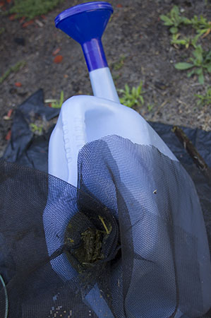 Using the tea is simple since I’ve used normal-size pails, I just put in some insect screen in the hole of my watering can to act as a sieve and then slowly poured in the tea. I then water my roses with it.